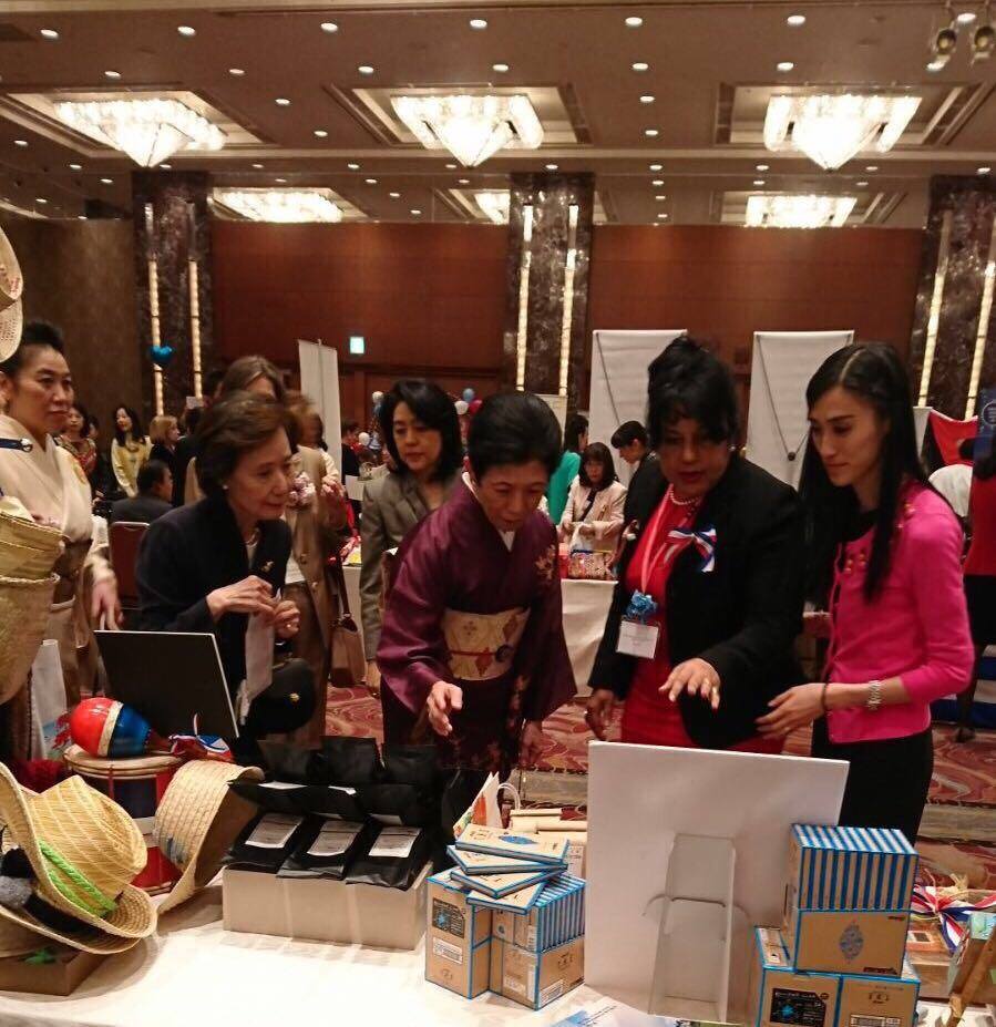En pasado 4 de Diciembre, se realizó la Feria Internacional de Ikebana en Royal Park Hotel, Tokio. La feria fue organizada por la Fundación Sogetsu de Ikebana con objetivos de la popularización de arte ikebana y intercambio cultural. Además de la presentación de ikebana, había espectáculos y cabinas de embajadas en Tokio para mostrar y vender los productos especiales de cada país. La Sra. Nozomi Yamada (directora encargada asuntos culturales de la Asociación) participó a la feria con la Sra. Doña Alexandra Álvarez, esposa de honorable Embajador Extraordinario y Plenipotenciario de la República Dominicana, Sr. Héctor Domínguez. Este año, honorable Su Alteza Imperial, Princesa Hisako Takamado ha venido a la feria y nos ha preguntado acerca de los productos dominicanos en la cabina dominicana.