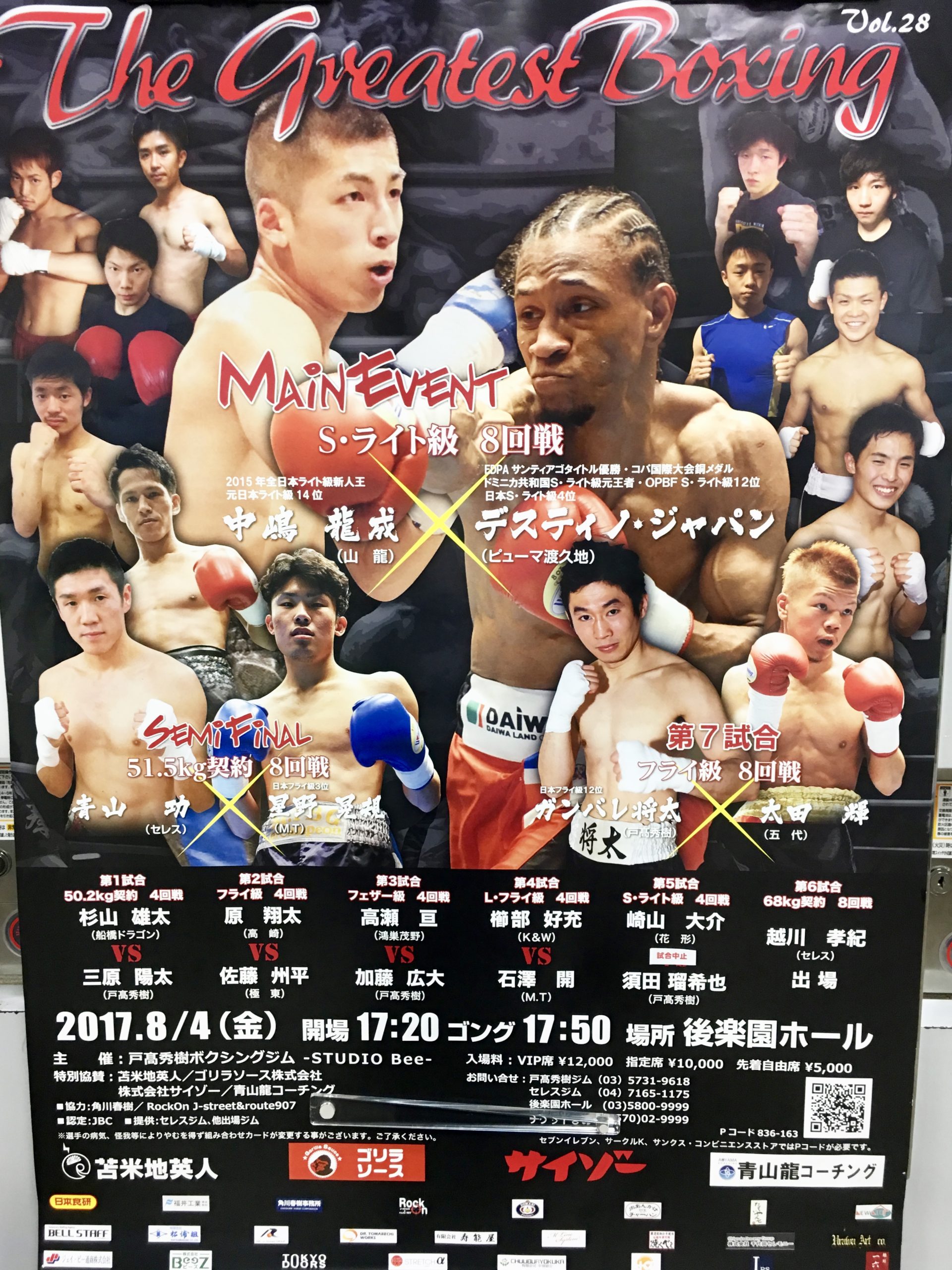 8月4日(金)に後楽園ホールで行われたThe Greatest Boxing Volume 28において、元ドミニカ共和国スーパライト級王者のデスティノ・ジャパン選手が2015年全日本ライト級新人王の中嶋龍成選手を5ラウンドTKOにて勝利致しました!私にとっては、同選手の勝ち負けよりも、普段から真面目に努力する姿勢、そして所属されているピューマ渡久地ジムの皆さんとのチームワークの方が印象に残りました。本試合の勝利により、デスティノ選手は日本スーパーライト級1位、東洋太平洋スーパーライト級9位となり、日本チャンピオンや世界戦などが見えてきました。次の試合は12月を予定しているとのことですので、是非皆さんで引き続き応援しましょう!!