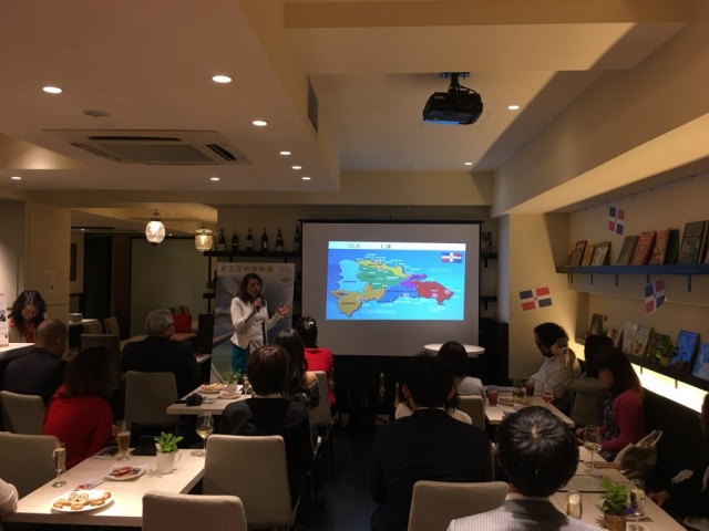 En 18 de abril, se realizó un evento de gastronomía, “Noche Dominicana” en el restaurante de “Embajada de Tengenji” que tiene objetivo para conectar los países y regiones via gastronomía de cada país en el mundo. Después del discurso de apertura por su Excelencia Sr. Héctor Domínguez, el Embajador Extraordinario y Plenipotenciario de la República Dominicana en Japón, Srta. Joselyn Saladin, la Ministra Consejera de la Embajada Dominicana en Tokio presentó información básica acerca del país, incluido geografía, demografía, gastronomía, cultura y la gente. Ademas, Meiji HD presentó sus esfuerzos en más de una década para producir cacao de alta calidad con los productores dominicanos. Después de todos presentaciones, incluido un parte por la Asociación también, los participantes se disfrutaron las comidas dominicanas en estilo “buffet” y bailaron merengue. Los mejores bailadores han ganado rones dominicanos como premios. Para ellos, era una oportunidad única para experimentarse la comida y cultura dominicana. La Asociación también va a organizar y coordinar este tipo de evento en futuro. ¡Gracias por venir!