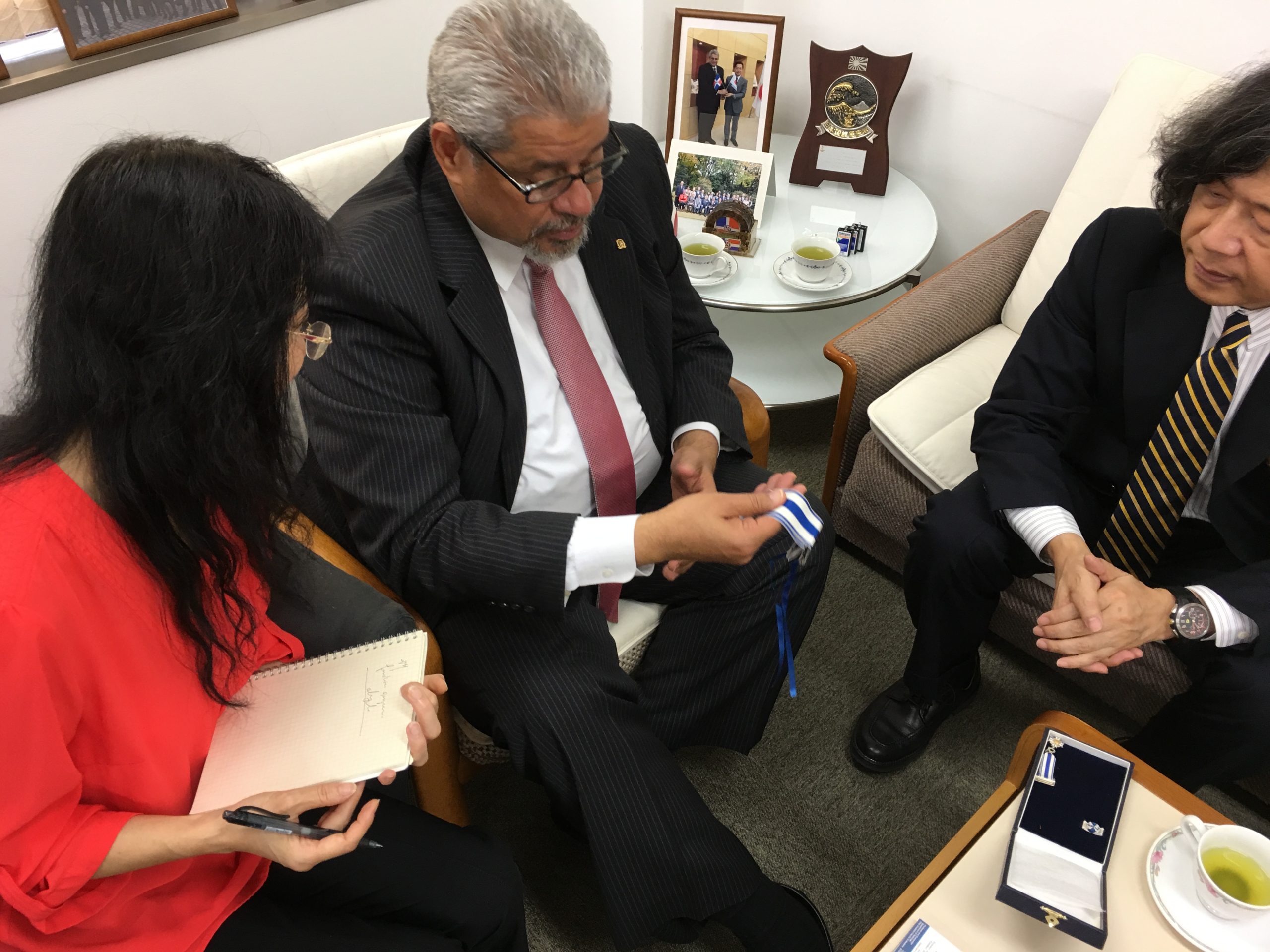 En 16 de septiembre, además de la visita en julio pasado, Dr. Mori y Dr. Nakayama de la Universidad de Oita visitaron a la Embajada Dominicana en Tokio para reunirse con Sr. Héctor Domínguez, Embajador extraordinario y plenipotenciario de la República Dominicana en Japón. Dr. Mori que ha contribuido al desarrollo de la sistema médico en la RD por 25 años recibió la Orden de Duarte, Sánchez y Mella en 29 de julio.
