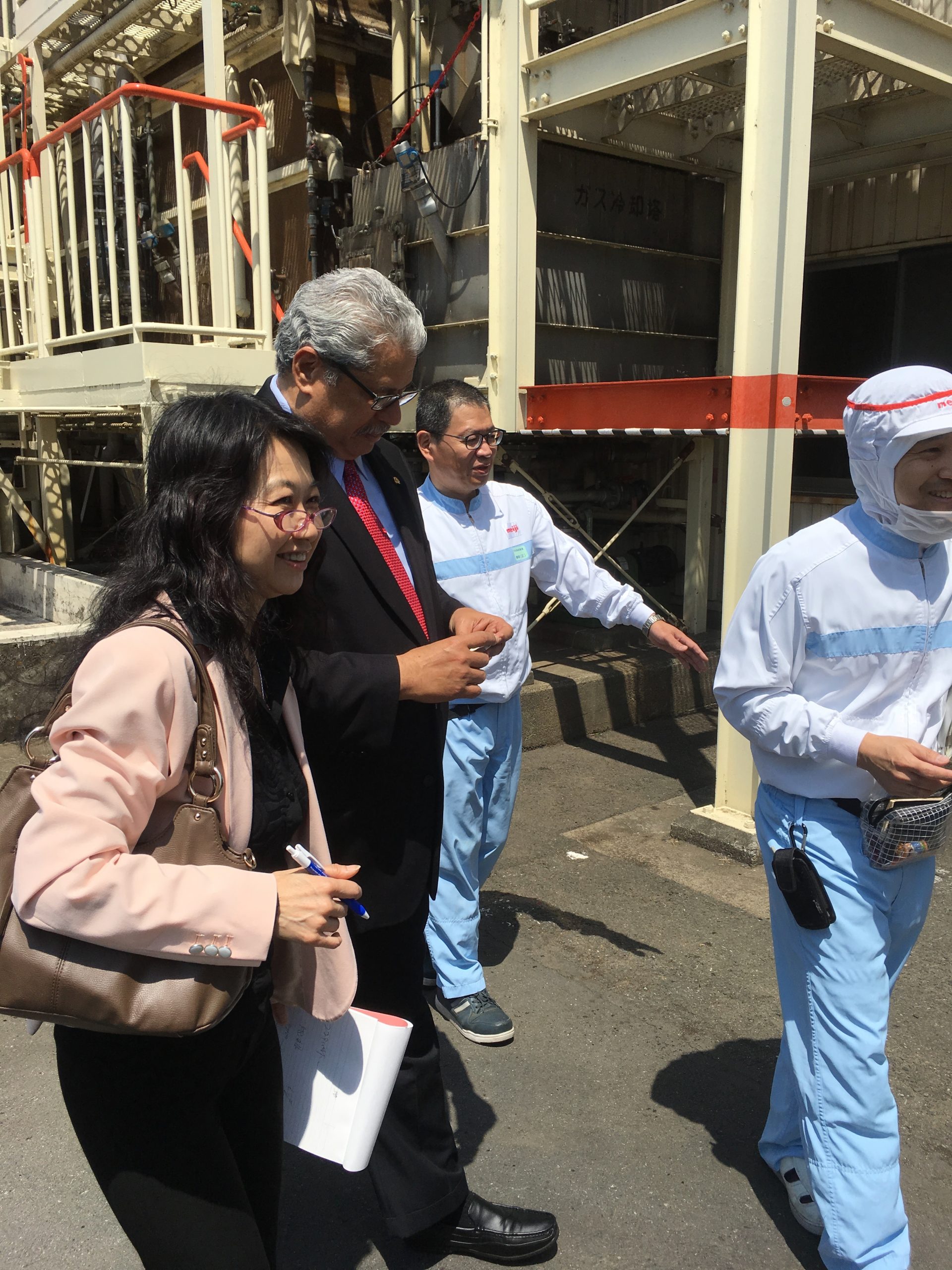 4月25日(火)、明治坂戸工場(埼玉県)にドミンゲス駐日大使、サラディン駐日ドミニカ共和国大使館公使参事官と共に行って参りました。同社はドミニカ共和国産カカオを利用したチョコレートの生産を行っており、その生産現場の視察をして参りました。一番印象的だったのは、カカオが積まれた袋が破かれ、発酵済のカカオ粒が生産ライン手前の貯蔵庫に一気に流れ出すシーンでした。その他、同社マーケティングや工場長の方のご案内により、広大な工場の一部を見学させて頂きました。一般の方向けにもツアーは開催されているとのことですので、是非参加してみてください!