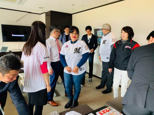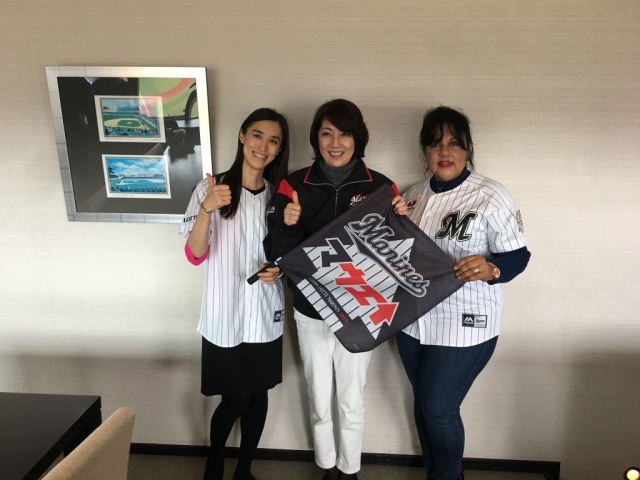 3月30日(土)、プロ野球開幕第2戦目の千葉ロッテマリーンズ対楽天ゴールデンイーグルス戦にドミンゲス駐日ドミニカ共和国大使、アルバレス夫人と共にお邪魔させて頂きました(於ZOZOマリンスタジアム)。球団内の様々な施設を見学させて頂いた後、個室にご案内頂き、マリーンズグッズと共に、試合を観戦させて頂きました。今後一人でも多くラテンアメリカやドミニカ共和国出身の選手が千葉ロッテマリーンズに入団されることを期待すると共に、日本人選手のドミニカ共和国ウィンターリーグの派遣等において、微力ながら協力させて頂きたく存じます。今回お誘い頂いた重光オーナー夫人、試合前のお忙しいところにも関わらずお時間取って頂いた井口監督、バルガス選手、吉井コーチ、わざわざお部屋までお越し下さった解説者の藪さん、そして球団関係者の皆さまに心より御礼申し上げます。またプレミア12の際にお邪魔致します!