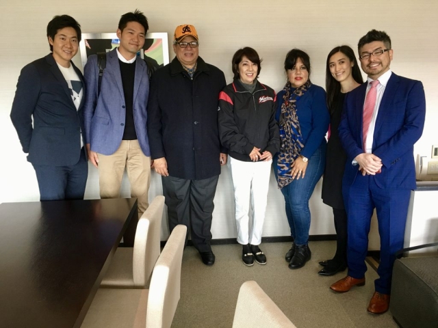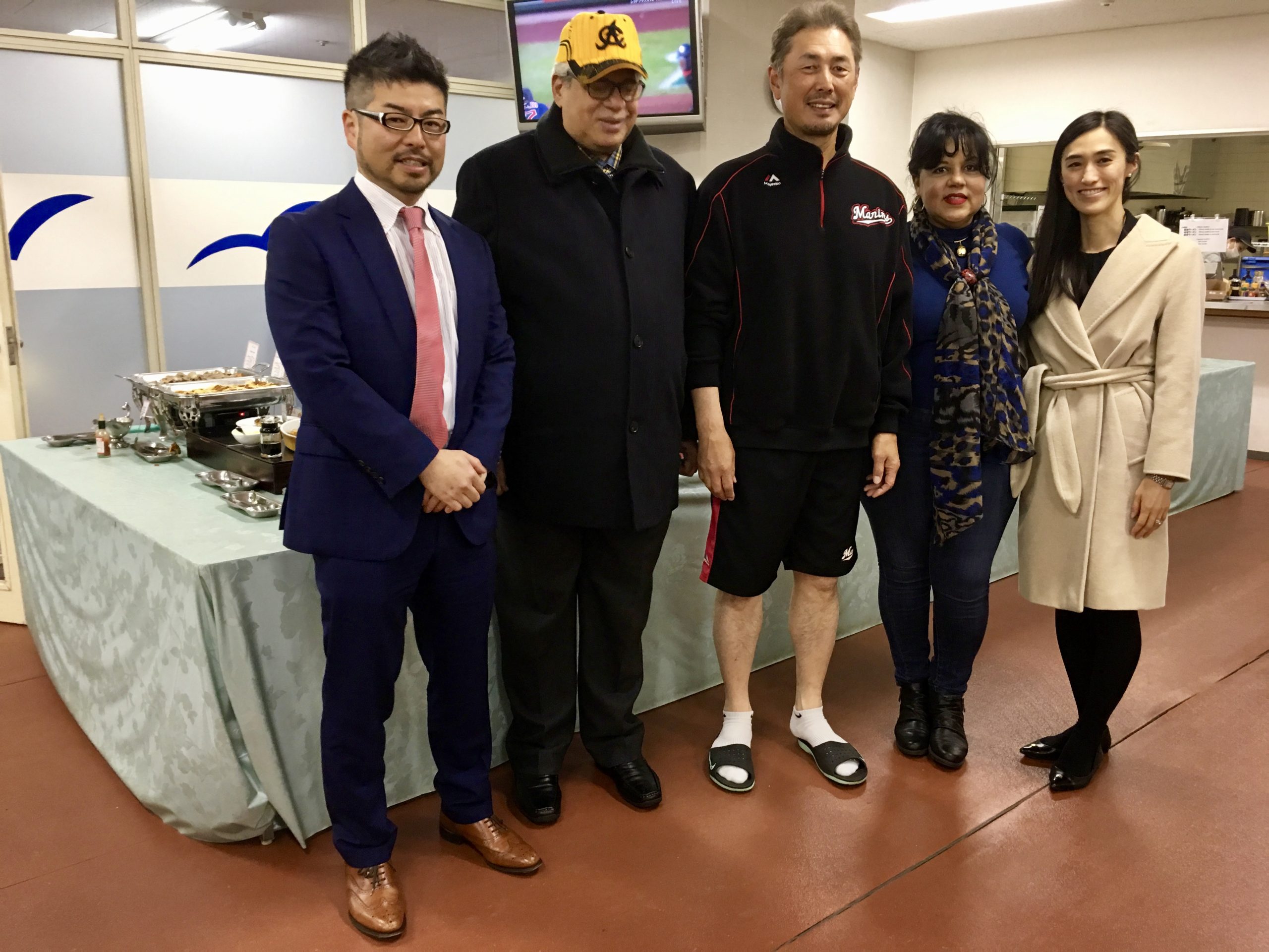 En 30 de Marzo, visitamos a la segunda ronda de la apertura de béisbol profesional japonés; Chiba Lotte Marines contra Rakuten Golden Eagles con el Sr. Embajador Héctor Domínguez y su esposa doña Alexandra Alvarez en Zozo Marine Stadium. Después de chequear los instalaciones del equipo, incluido terreno de juego, campo de práctica, gimnasio y comedor, nos disfrutamos el torneo en la sala privada. Espero que más peloteros latinos y dominicanos juegan en Marines y también queremos ayudar el equipo que sus jugadores japoneses puedan participar a la liga invernal en la República Dominicana. Agradecemos sus tiempo y cortesías particularmente a doña Manami Shigemitsu (esposa de la dueña del equipo), Sr. Tadahito Iguchi (director), Sr. Kennys Vargas (pelotero puertorriqueño), Sr. Masato Yoshii (entrenador de pitcher), Sr. Keiichi Yabu (comentador) y los personales del equipo. ¡Volvemos al estadio para los juegos de WBSC Premier 12 en noviembre!