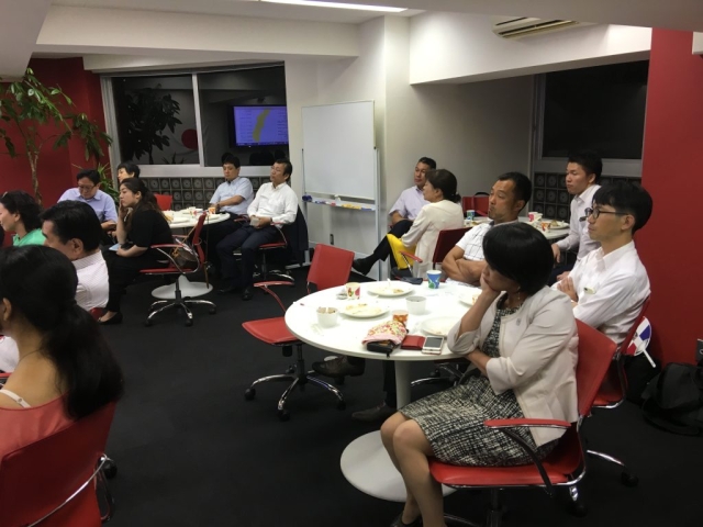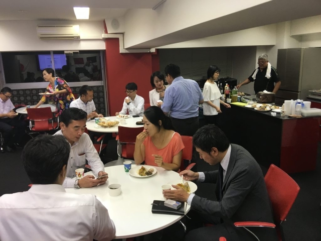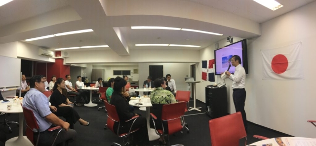 En pasado 4 de Septiembre, celebramos el cuarto “Dominican Speakers” con el Sr. Takayuki Kondo, el Representante Residente de JICA en la República Dominicana. Aunque fuera la noche del día laborable, total de 20 personas han participado, incluido la Doña Alexandra Álvarez, la esposa del Sr. Embajador de la República Dominicana en Japón, el Sr. Akihiko Yamada, ex-Representante Residente de JICA en la República y dos funcionarios de la ciudad de Matsudo que es el “host-town” para los equipos dominicanos a los Juegos Olímpicos en 2020. El Sr. Kondo nos presentó varios tipos de los proyectos de JICA (gobierno japonés), incluido el establecimiento de la hospital CEMADOJA (Centro de Educación Médica de Amistad Dominico Japonesa) para curar enfermedades gastrointestinales, establecimiento de alta capacidad de enseñanza de matemáticas y el desarrollo de la agricultura (el cultivo de arroz), etc. Según el Sr. Kondo, el estilo de la corporación japonesa ha cambiado junto con el desarrollo económico del país. Por ejemplo, en primeras etapas, JICA estaba concentrando en la area del “nivel primaria” que satisfacería las necesidades básicas de las vidas de dominicanos, pero ahora está trabajando “temas globales” como eliminación de residuos plásticos, atascos de los tráficos en la capital, prevención desde desastres naturales y desarrollo las comunidades regionales, etc. Después de la presentación del Sr. Kondo, el Sr. Hiroyuki Shirai de la Ciudad de Matsudo también nos explicó la colaboración de su ciudad a la ciudad de Constanza acerca del cultivo de pera japonés (se llama “Siglo 20”). En fin, la Doña Álvarez nos mostró su profundo aprecio por la colaboración y cooperación de Japón hacia la República Dominicana. Como había montón de preguntas desde los participantes, fue una oportunidad única para nosotros a conocer la República Dominicana desde los puntos de la corporación internacional. Muchas gracias por su gran presentación, el Sr. Kondo (aunque fuera el próximo día de regresarse desde la República a Japón). Por último, muchas gracias por su gran comida, el Sr. Eduardo Ferrada.