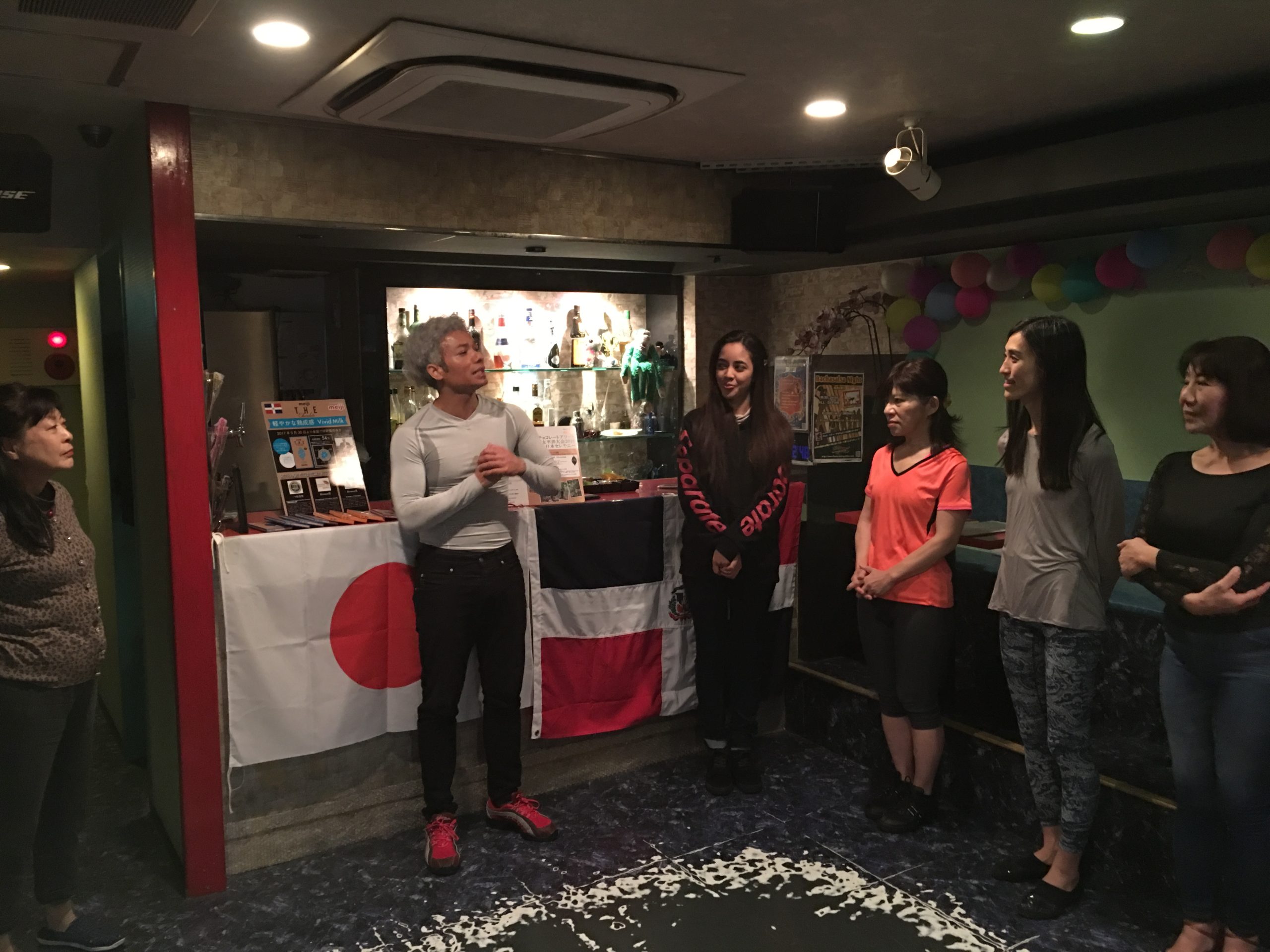 En pasado 9 de febrero, celebramos el decimoséptimo taller de baile dominicano (el primero taller del año 2019). Con 9 participantes, aprendemos números de movimientos básicos para bailar merengue desde el Sr. profesor Luis Sasaki. En efecto, a pesar de que nevó desde la mañana en Tokio en el día del taller, ¡nuestra pasión por el baile hizo desaparecer la frialdad! Vamos a planificar el próximo taller a finales de marzo. ¡Nos vemos en el próximo taller! (Además, el consulado Sr. Cepeda y el primer secretario Sr. Thomas de la Embajada Dominicana en Tokio llegaron al bar, Fiesta Tokio)