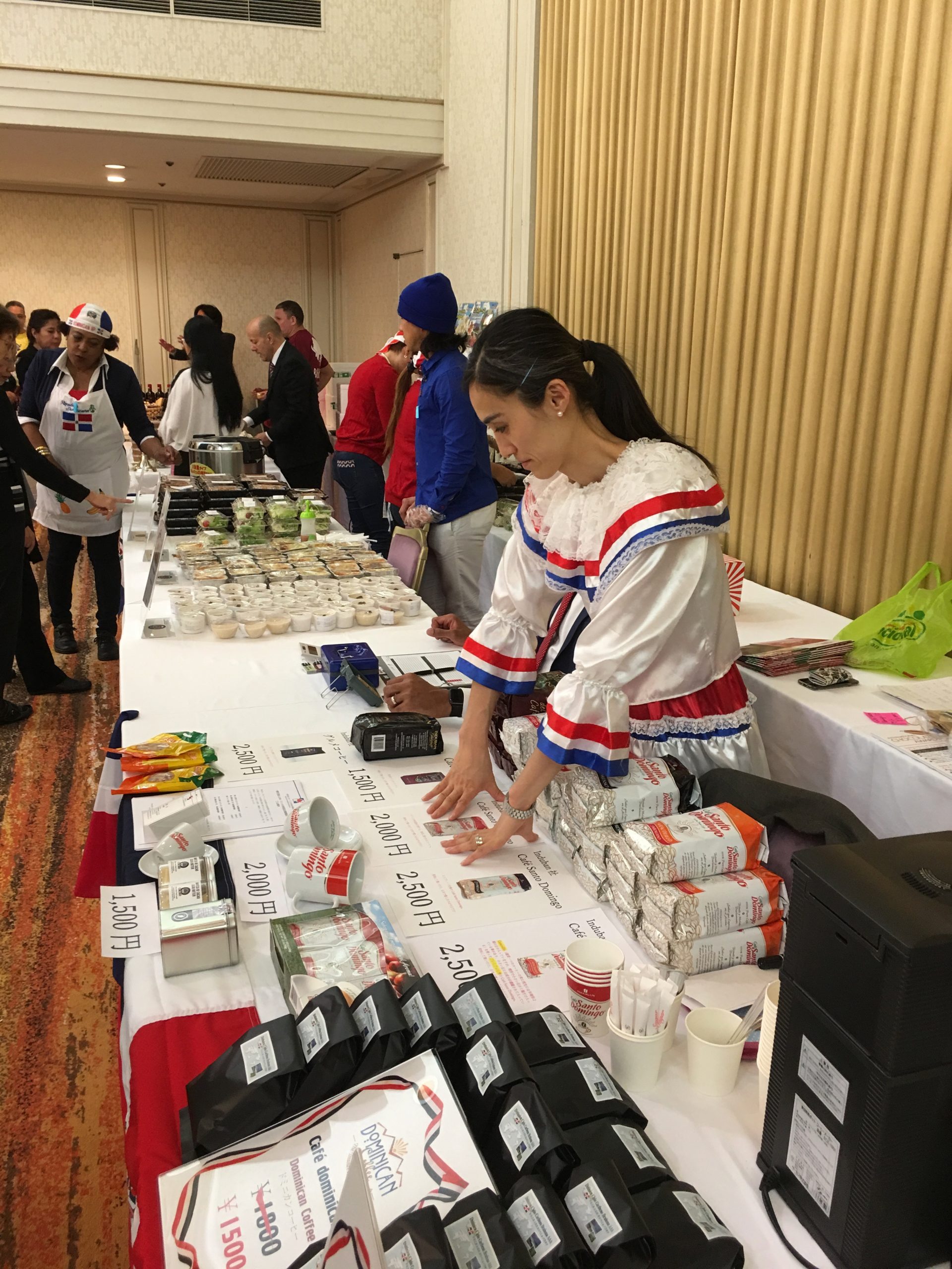 En pasado 22 de Octubre, participamos en el Festival Latinoamericano y del Caribe 2018 (bazar de caridad). Como año anterior, nuestra Asociación ha presentado los paquetes de “Cafe Santo Domingo” que es café nacional de la República Dominicana (este año, añadimos té de cacao, carimango y algunas tazas de café, etc). Embajada Dominicana enJapón también ha presentado rones, cafés, chocolates, artesanías y comidas Dominicanas (bento box con moro de habichuelas, pollo guisado y ensalada; “bandera”) a los miles de participantes que querían sentirse y conocer a la cultura américa latina y dominicana. El bazar es el evento anual y es organizado por la Asociación de Damas Nippo-Latinoamericanas y del Caribe. Las ganancias del bazar son usado para la ayuda a los niños en los países latinoamericanos. Muchas gracias por sus visitas, participación y colaboración al bazar. ¡¡Estamos esperando el próximo año!!