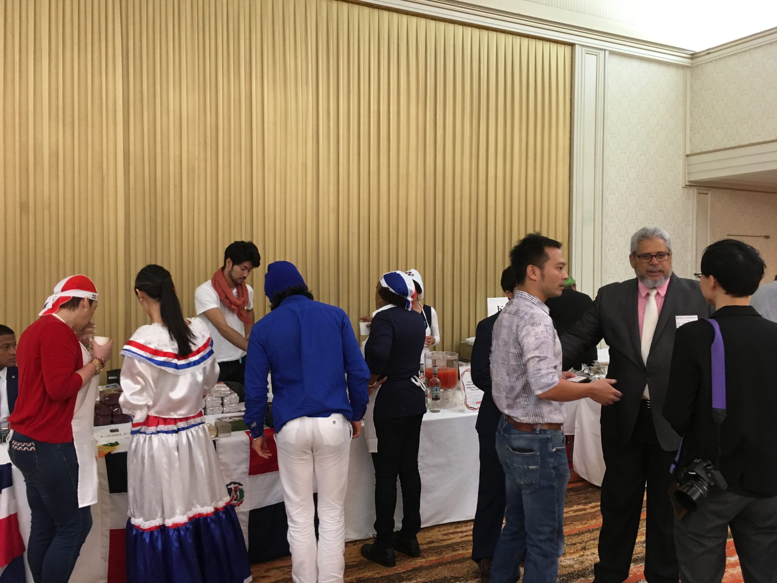 10月22日(月)、毎年恒例の「フェスティバル・ラティノアメリカーノ」(チャリティーバザー)に参加してきました。今回も当協会は、ドミニカ共和国の国民的コーヒーである「カフェ・サントドミンゴ」を中心にドミニカ共和国産品(カカオティー、ドライマンゴ、コーヒーカップなど)を出展させて頂きました。駐日ドミニカ共和国大使館もドミニカ共和国産のラム酒、コーヒー、チョコレート、民芸品、衣料品に加え、ドミニカ共和国料理(バンデラ弁当)を販売し、来訪された多くの方々にドミニカ共和国を知って頂く機会となりました。本バザーは一般社団法人日本・ラテンアメリカ婦人協会の主催で毎年行われます。バザーでは、駐日ラテンアメリカ・カリブ諸国の各大使館がブースを出展し、各国の民芸品や料理を販売します。販売の収益はラテンアメリカ諸国の子供達への援助に使われるとのことです。本年も多くの方々にご来場頂きました。来年も楽しみですね!