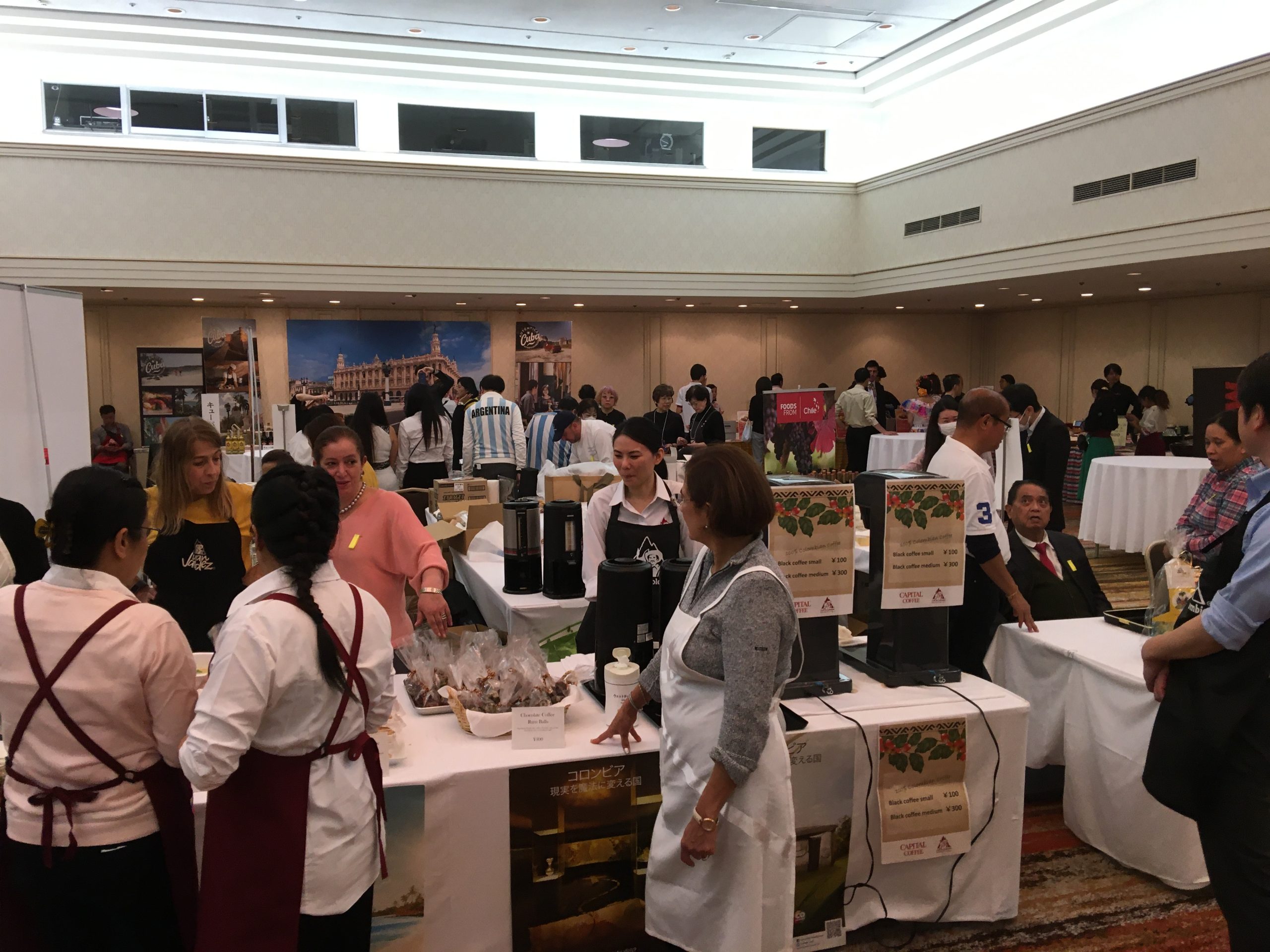 去る11月25日(月)、毎年恒例の「フェスティバル・ラティノアメリカーノ」(チャリティーバザー)に参加してきました。今年も当協会は駐日ドミニカ共和国大使館ブースの隣にスペースを頂戴し、ドミニカンコーヒー、チョコレート、コーヒーカップ、その他民芸品、絵画等を販売させて頂きました。毎年数千人が来訪されるバザーで、参加者の皆様はラテンアメリカ各国の食事や(ドミニカ共和国は毎年恒例「バンデラ弁当」でした!)、民芸品、コーヒー、チョコレート、アルコール、宝石類を購入されておりました(本バザーの売上はラテンアメリカ諸国の恵まれない子どもたちの教育や医療等に使われます)。最後にはラッフルの当選発表が行われ、豪華景品を大勢の方々た持ち帰っておられました!本バザーを通じて、日本の皆さまがドミニカ共和国を含むラテンアメリカ諸国の文化に触れていただくことは本当に嬉しいことであると思っております! 来年もお楽しみに!