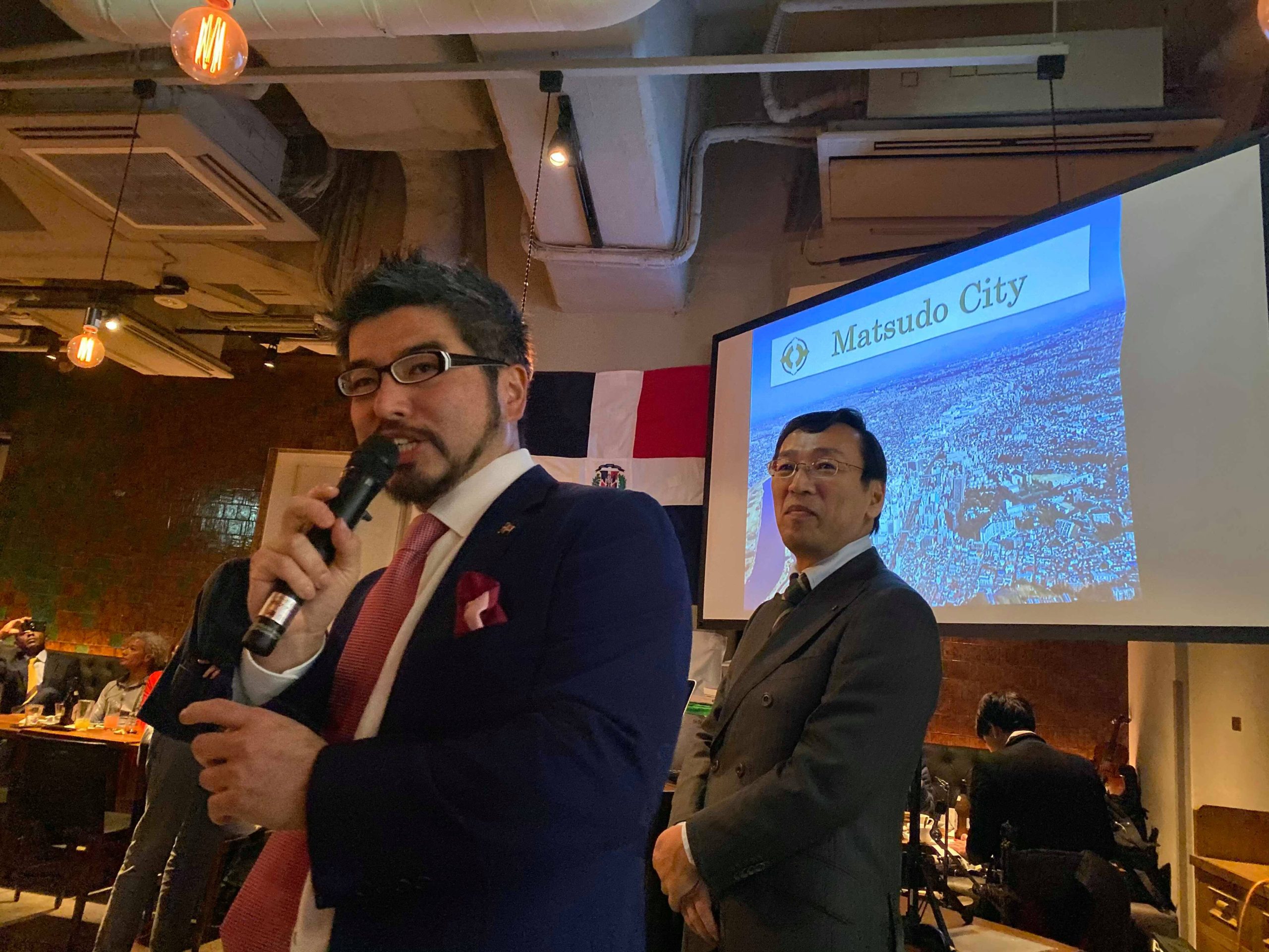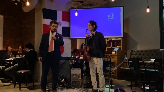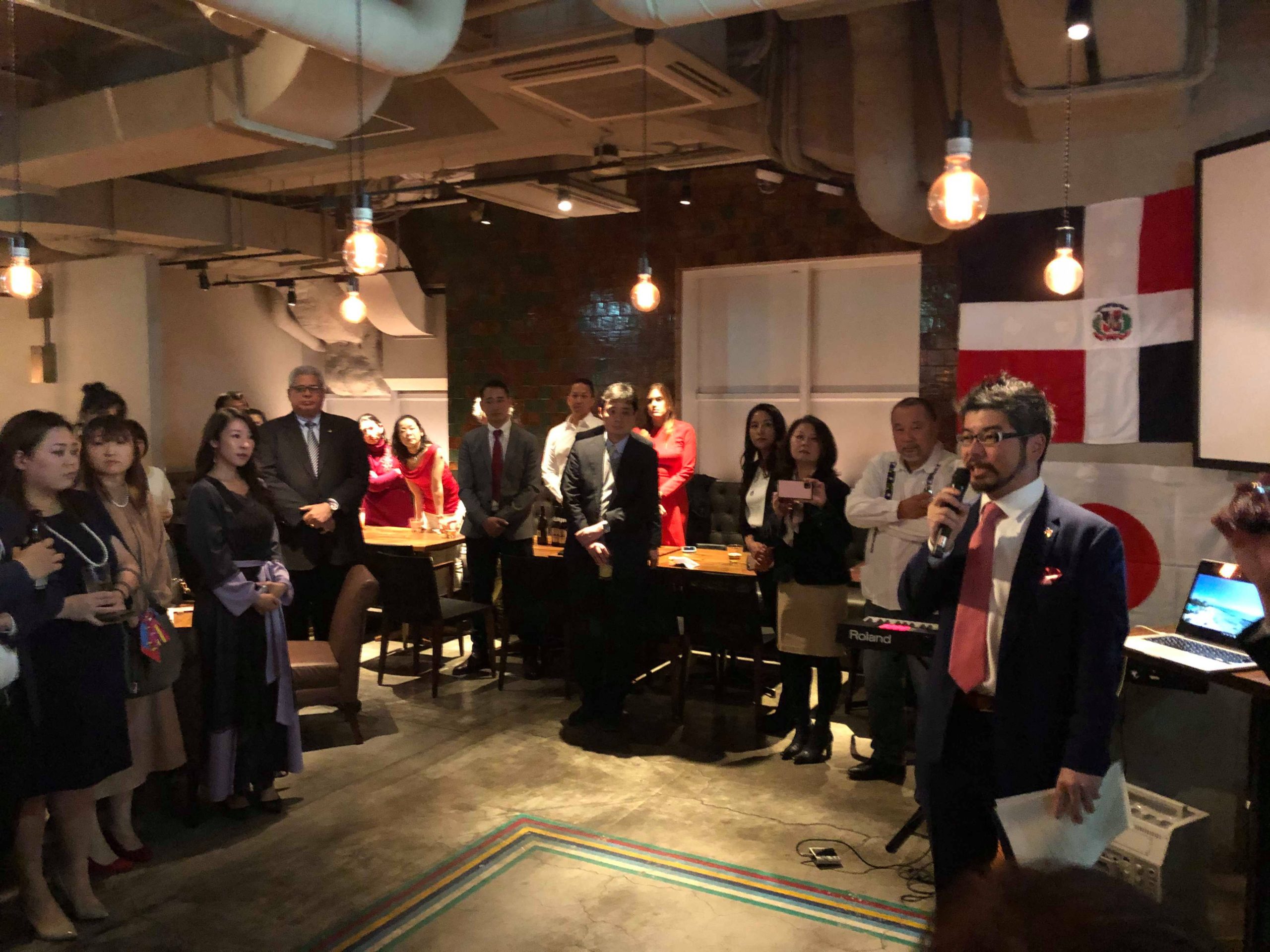 12月10日(火)、銀座のTORO TOKYOレストランにおいて、2019年の「忘年会」を開催致しました。今回で3回目となる本会には計102名(遂に100名超え!)の方々にご参加頂きました。ドミンゲス駐日ドミニカ共和国大使閣下のご挨拶に始まり、川代Japan Export Import社長の乾杯、小河シェフのドミニカン料理紹介のあと、松戸市文化観光国際課さまのプレゼンテーション、バイオリニストTSUMUZIさんの演奏、そして最後はLuis Sasakiさんによるドミニカン・ダンスショーと、正に「大盛り上がり」の会となりました。今回は、ドミニカンボクサーのブラディミール・バエスさんをはじめ、在日ドミニカンの方々も多くご参加されたほか、医療法人社団世航会からも多くのお医者様が駆けつけて下さいました(中島理事長誠に有難うございました)。今後も当協会は日本とドミニカ共和国両国間の「真の友好親善関係」構築のため、地道な活動を続けて行きたいと思います! 引き続き皆様のご理解とご協力のほど、宜しくお願い致します。また、改めて今回ご参加頂いた皆様、心より御礼申し上げます。