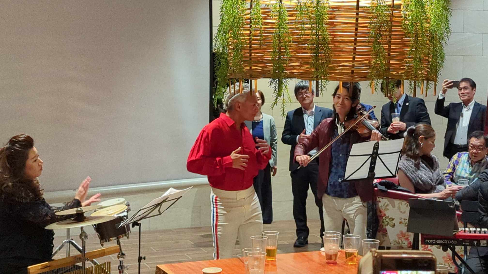 鈴木 渉代表理事による冒頭挨拶のあと、ロバート高田・駐日ドミニカ共和国特命全権大使より「バーチャルドミニカンツアー」、明治グローバルカカオ事業本部長カカオクリエーターの宇都宮洋之さんより「明治のカカオ事業の取り組み」に関するプレゼンテーションのほか、バイオリニストTSUMUZIさんによる演奏、そしてLuis Sasakiさんのメレンゲ&バチャータレッスンが行われました。