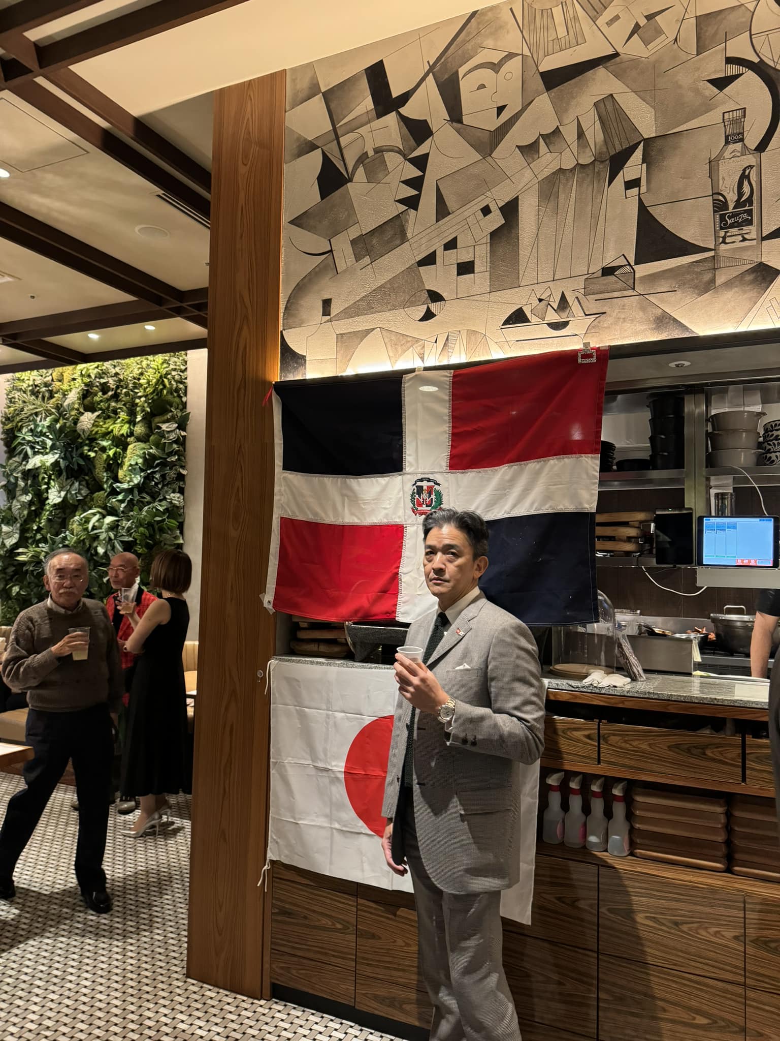 Como parte de la gastronomía dominicana, todos disfrutaron de la “Bandera”, un plato típico de República Dominicana, y en el bar tuvimos colecciones de rones dominicanos, como Brugal, Barceló y “Eduardo León Jiménez” traído por el Sr. Noboru Kawashiro, el presidente de Japan Export Import.