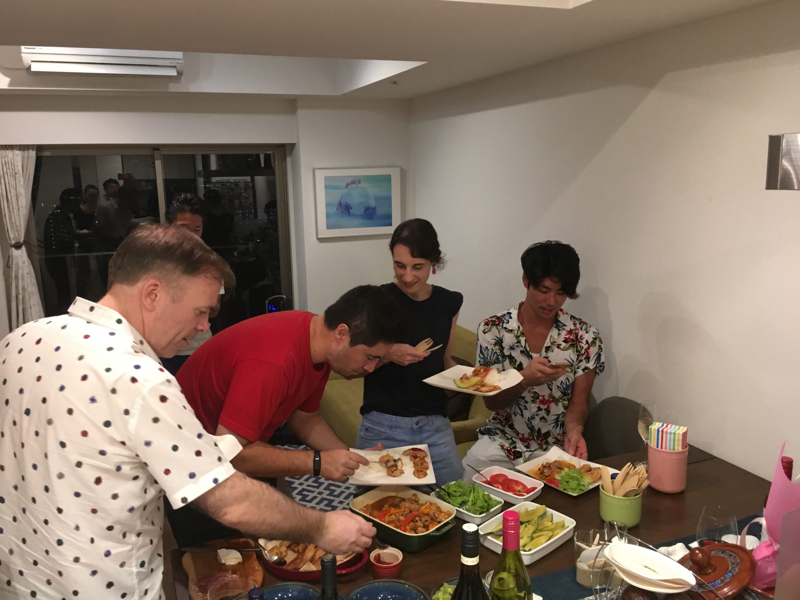 ¿Cómo etán todos? Hace calor, verdad? En pasado 11 de agosto, hicimos una peqeñita fiesta de la casa con comida dominicana. Miembros y amigos de la Asociación se disfrutaron comidas tipicas criollas como empanada, tostón y pollo guisado con música dominicana y latina. También los fuegos artificiales desde Odaiba (bahía de Tokio) eran bellos. ¡¡Estamos seguro que la hacemos otra vez!!