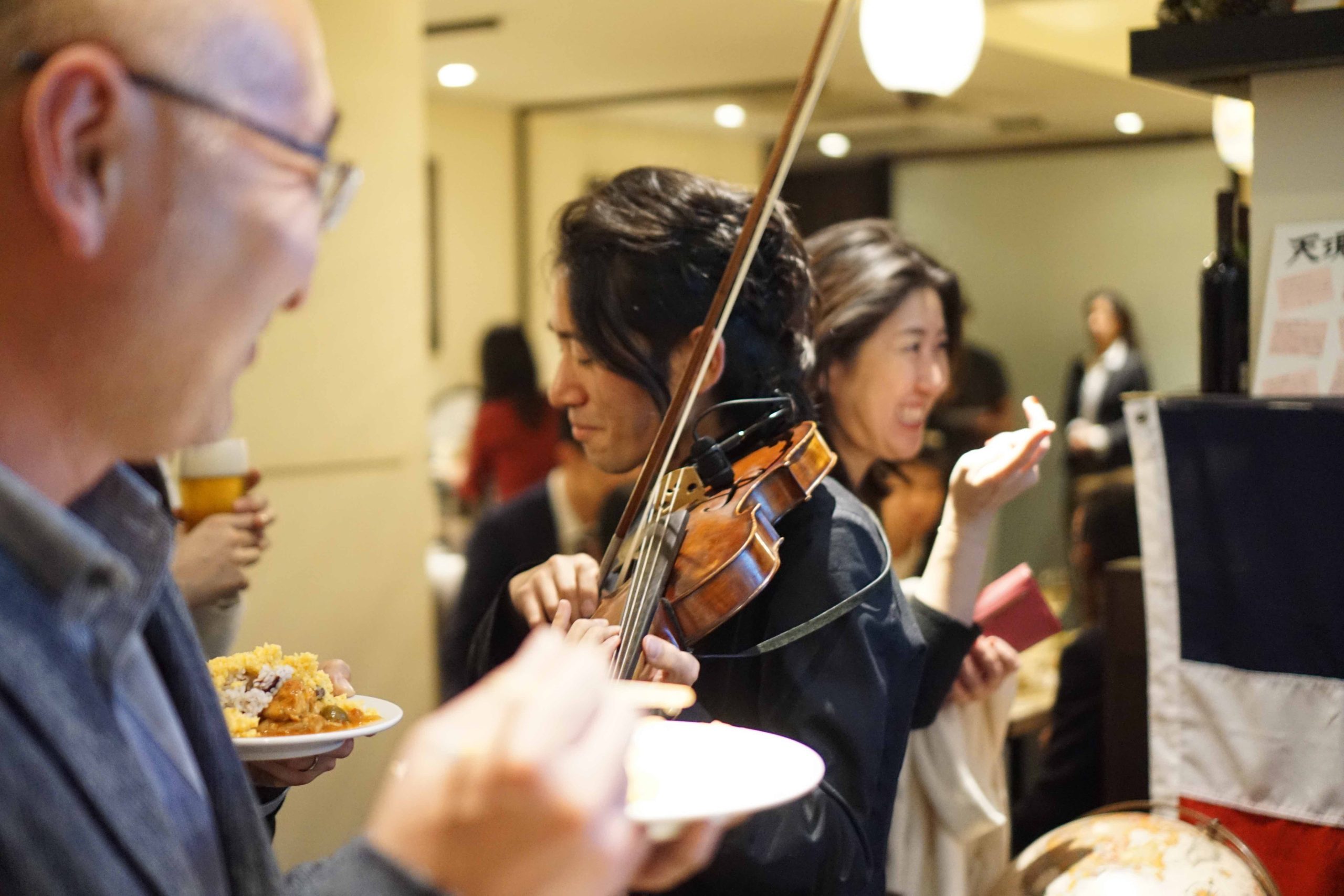 12月11日(月)、広尾の「天現寺大使館」レストランにて「TSUMUZI x 一般社団法人日本・ドミニカ共和国友好親善協会コラボ忘年会パーティー」を開催致しました!! 当日はエクトール・ドミンゲス駐日ドミニカ共和国特命全権大使、令夫人、バイオリニストのTSUMUZIさん、ドミニカ共和国にて国際協力活動をされている廣瀬芽里さん、ダンサーのLuis Sasakiさんをはじめとするゲストの方々も含め、60名以上の方々にお越し頂きました! 皆様本当に有難うございました。ドミンゲス大使のご挨拶・乾杯に始まり、デザートを含む7種類のドミニカン料理、TSUMUZIさんバンドの演奏、廣瀬さんの協力活動のプレゼンテーション、Luis Sasakiさんのダンスレッスンを皆様心より楽しんで頂きました! 最後は、日本チャンピオン戦を控えているボクサーのブラディミール・バエス(Destino Japan)さんにスピーチもして頂きました。今回この様な盛大なパーティーを開催できましたのも、関係者皆様のお力添えがあってのことであると存じます。2018年も皆様楽んで頂ける様、様々なイベントを開催してゆきたいと思います。ご来場の皆様、本当に有難うございました。