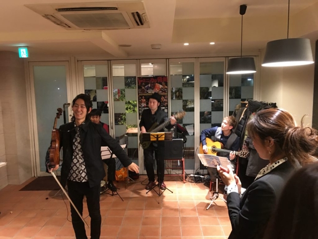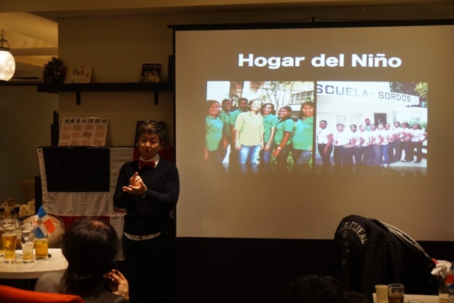 En 11 de Diciembre, en el restaurante de la Embajada de Tengenji, realizamos la fiesta de Navidad vía colaboración con un violinista TSUMUZI y su banda. Comienza con saludos bienvenidos por honorable Embajador Extraordinario y Plenipotenciario de la República Dominicana en Japón, Sr. Héctor Domínguez, más que 60 participantes se disfrutaron la actuación musical por la banda de TSUMUZI, la presentación por Srta. Meri Hirose que se ha dedicado a apoyando a la comunidades sordas en la República Dominicana, la lección de baile dominicano por Sr. Luis Sasaki, y por supuesto, las comidas y bebidas dominicanas. Terminamos la fiesta con la palabra por Sr. Vladimir Baez, el boxeador dominicano que está esperando su próxima pelea por el campeonato japonés. Gracias por sus participaciones y apoyos para que esta gran fiesta se realizara. Asociación de la Amistad Dominico-Japonesa continuará a organizar los eventos que todo el mundo puede disfrutarse en 2018. Muchas gracias por su colaboración y presencia.