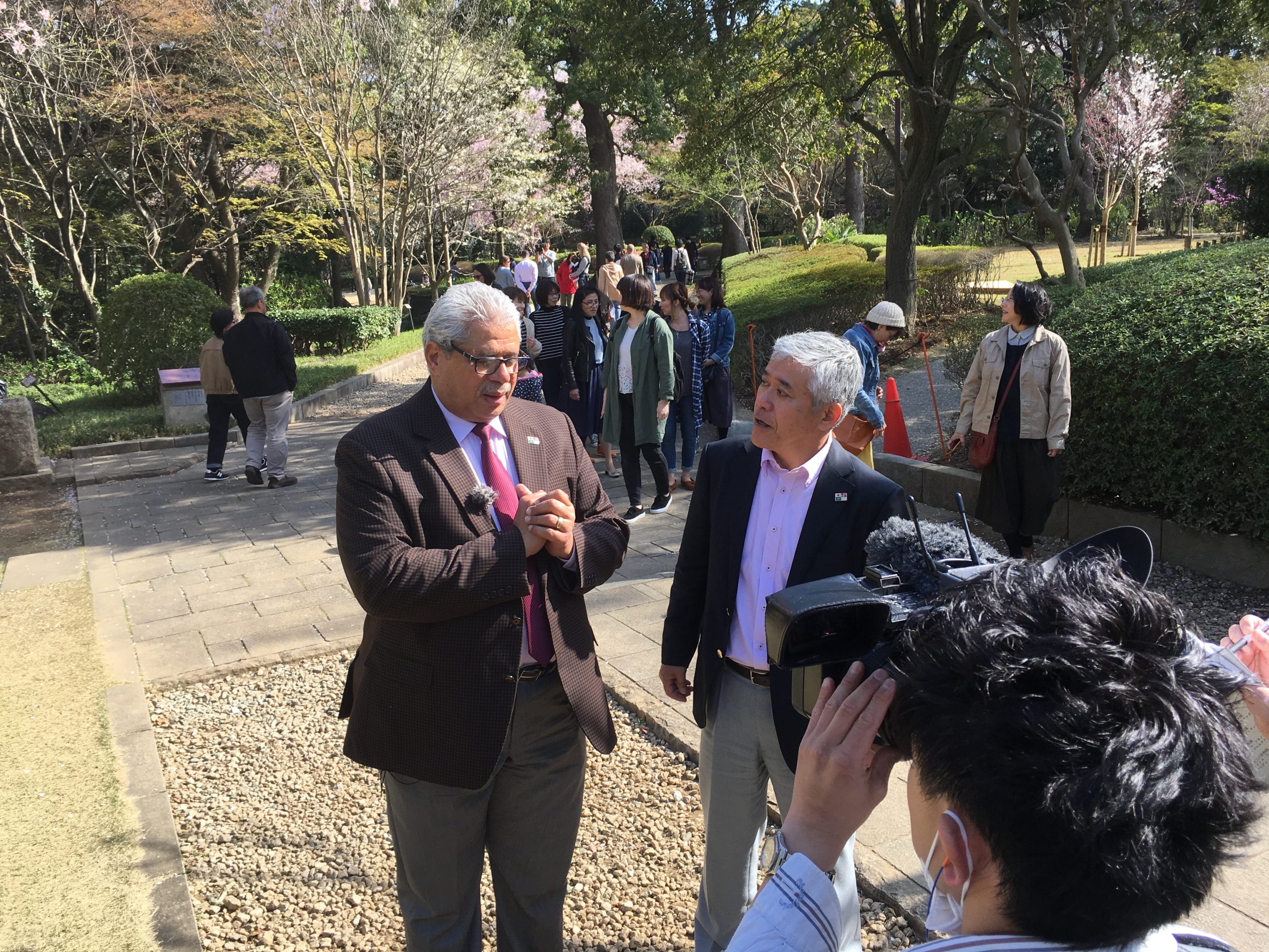 去る3月31日(土)GRULAC (Group of Latin American Countries)主催の花見に同行してきました。2018年上半期のGRULAC議長国はドミニカ共和国で、ドミンゲス駐日大使が、ドミニカ共和国に対する西洋梨の技術協力や、2020年東京オリンピックにてドミニカ共和国選手団のトレーニング受入れを検討している松戸市への花見視察旅行を企画されました。当日は、ラテンアメリカ各国の大使や公使の方々が、松戸運動公園や常盤平さくら通り、そして水戸藩最後の藩主徳川昭武が建てた戸定邸を見学しました。また、歓迎昼食会には、松戸市長や地元選出の国会議員、市会議員、観光協会、市役所職員、松戸市企業関係者の方々がご出席され、松戸市の歴史や観光地としての魅力などについてお話を頂戴致しました。本花見は、ドミニカ共和国と友好関係にある松戸市を知ることが出来た貴重な機会でした。ご関係者の皆様、誠に有難うございました。